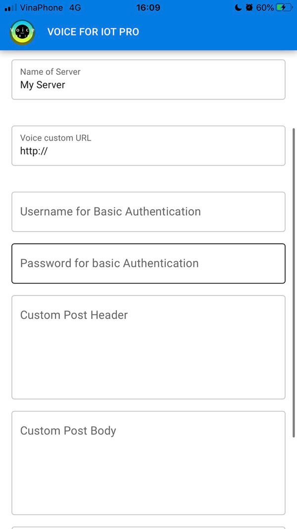 - Voice custom URL: URL for posting voice command to, must support POST.
