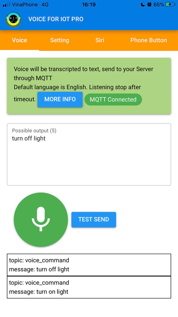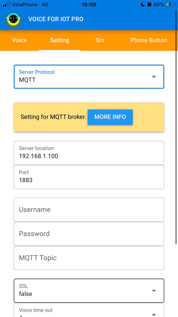 - MQTT Topic: Topic that command will be sent to, eg: voice_command
